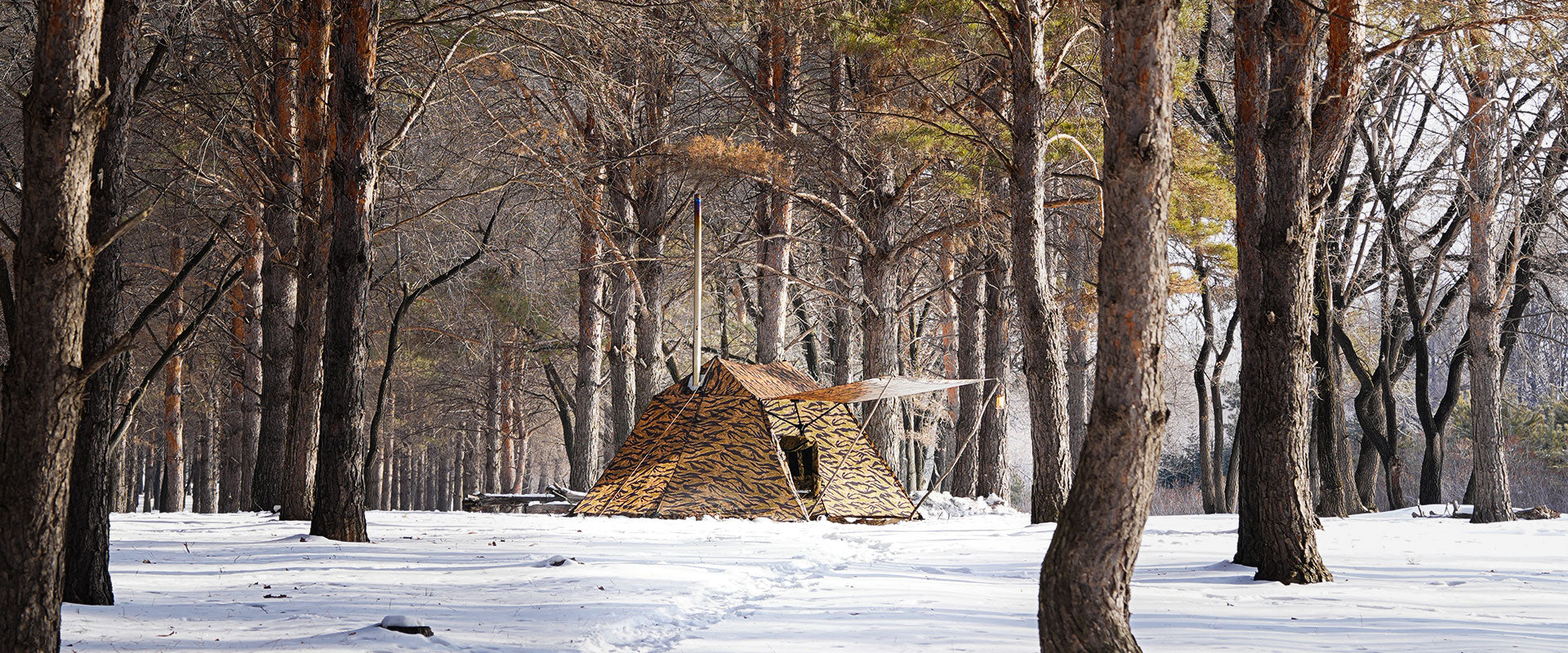 The Hill Zero Scarecrow is the ultimate and most versatile hot tent on the market. Its unique design makes a very roomy shelter with an impressive head room of 5'7" (170cm) allowing you to move freely inside without any danger. We made this possible by using poles at each ends, instead of a very hindering central pole. The Scarecrow is a very roomy two man shelter, but can also accommodate 3 adults (lengthwise) or 4 people (side wise) if necessary.